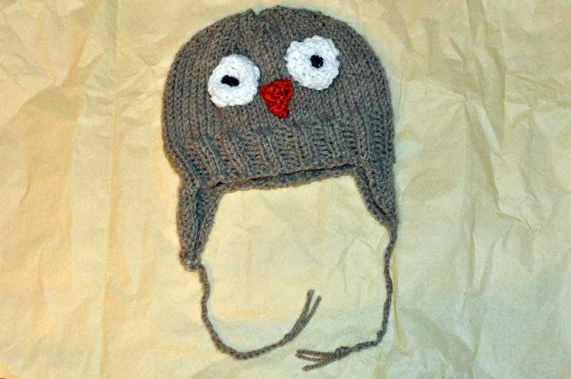 1. I knitted an owl hat last night for a coworker's shower this morning. The nursery is all owls, so I thought it appropriate. I remembered to take a picture as I was wrapping it up. I think it turned out pretty well for a mostly made up pattern in my head.
